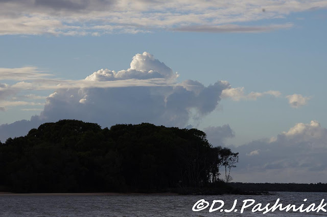 This photo looks right up towards Fraser Island which shows just where the very low land of the peninsular rises. This is also where the channel is between the island and Inskip Point and if you enlarge the photo you can just see the bay waters as a silvery line behind the first line of land.